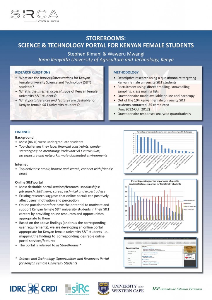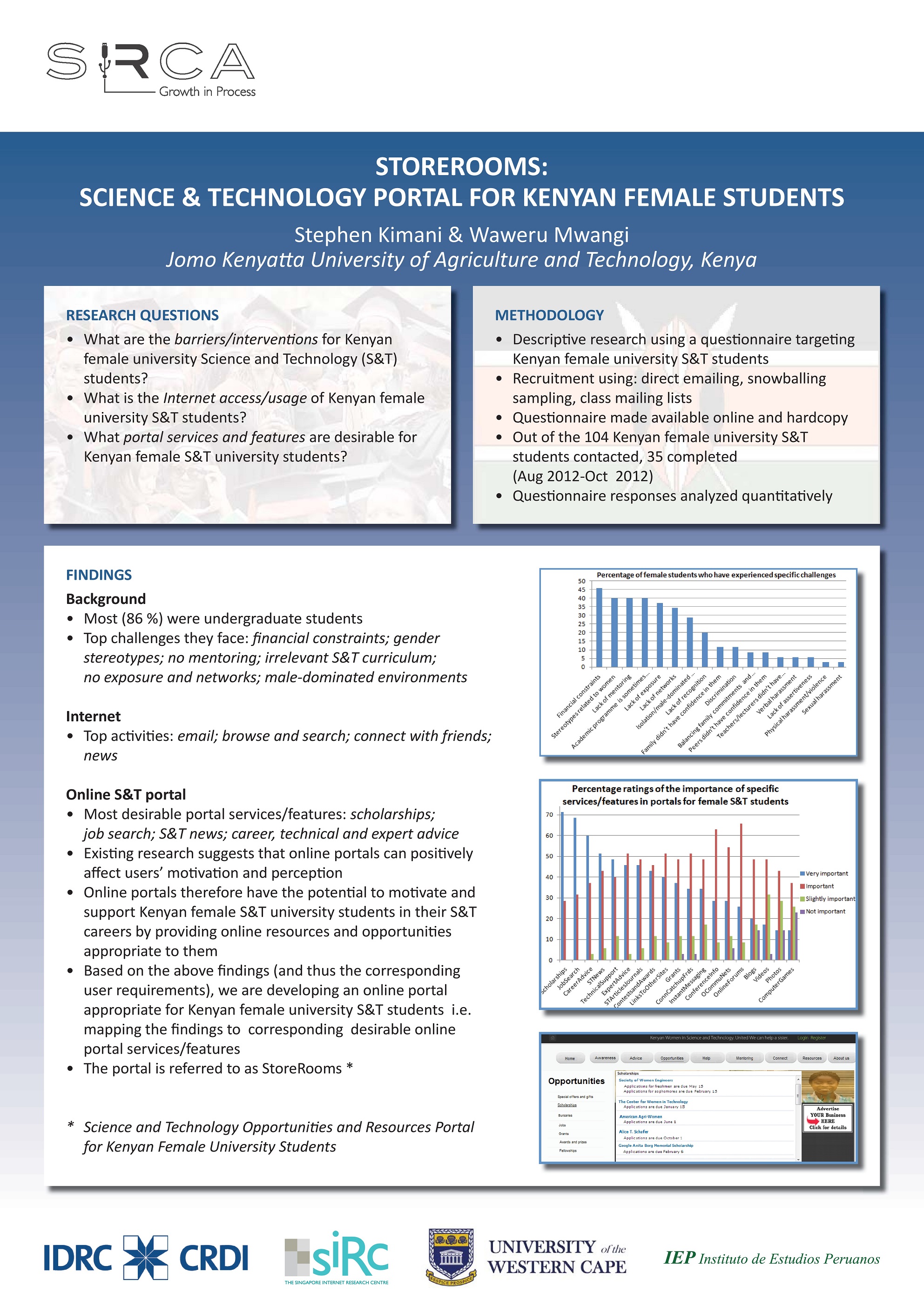 In Kenya it is extremely difficult to attract and retain female students in science and technology courses. There is a need to support female science and technology students in higher learning institutions. StoreRooms intends to realize an online portal providing relevant science and technology resources to Kenyan female university students.