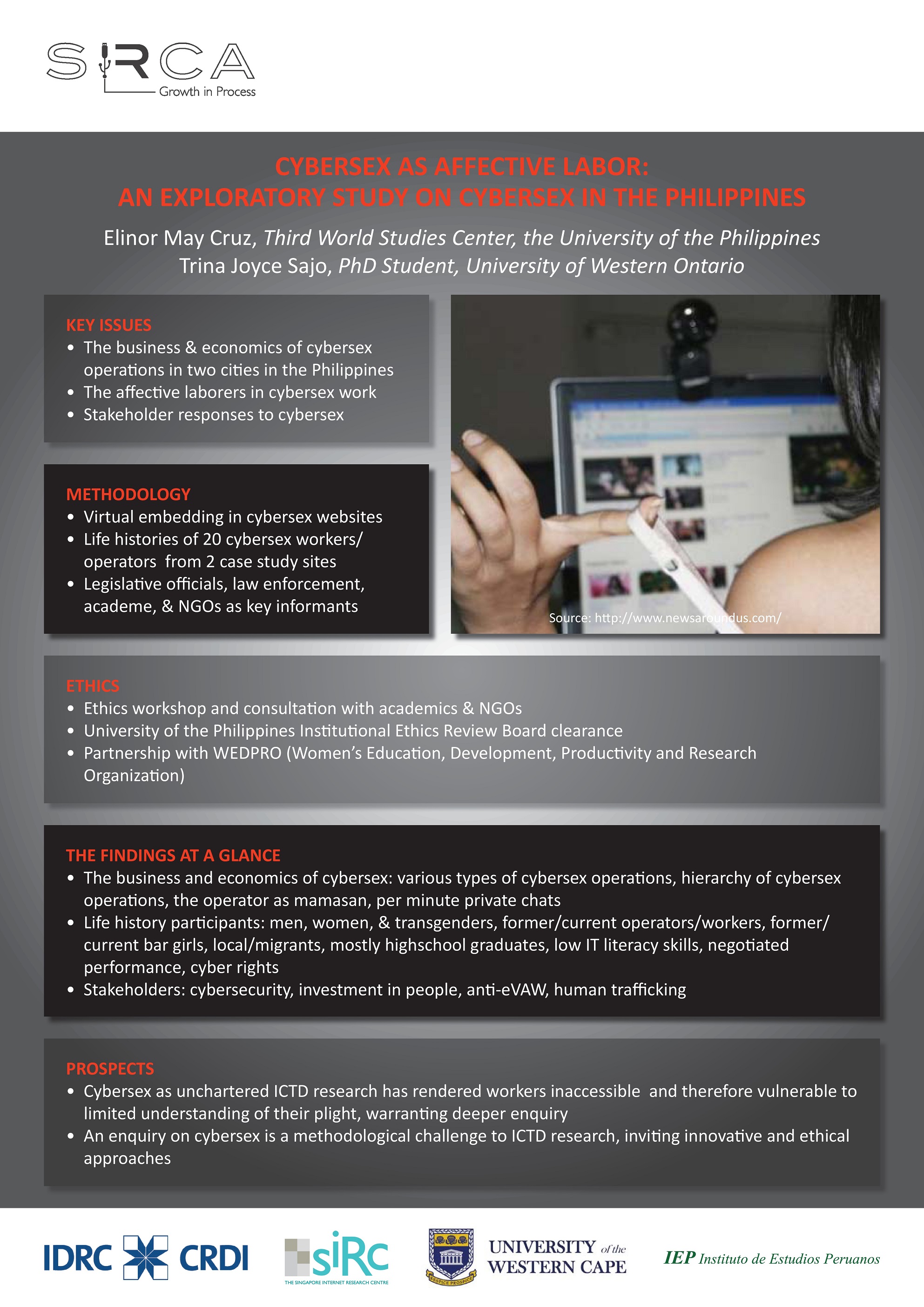 This study explores the Philippine cybersex industry, its economic and technological infrastructures, and cybersex workers, their labor conditions and life histories. Through the intersection of ICT development and cybersex industry, we unpack pressing concerns about the effects of capitalist-driven information technology on labor conditions and relations in the sex industry.
