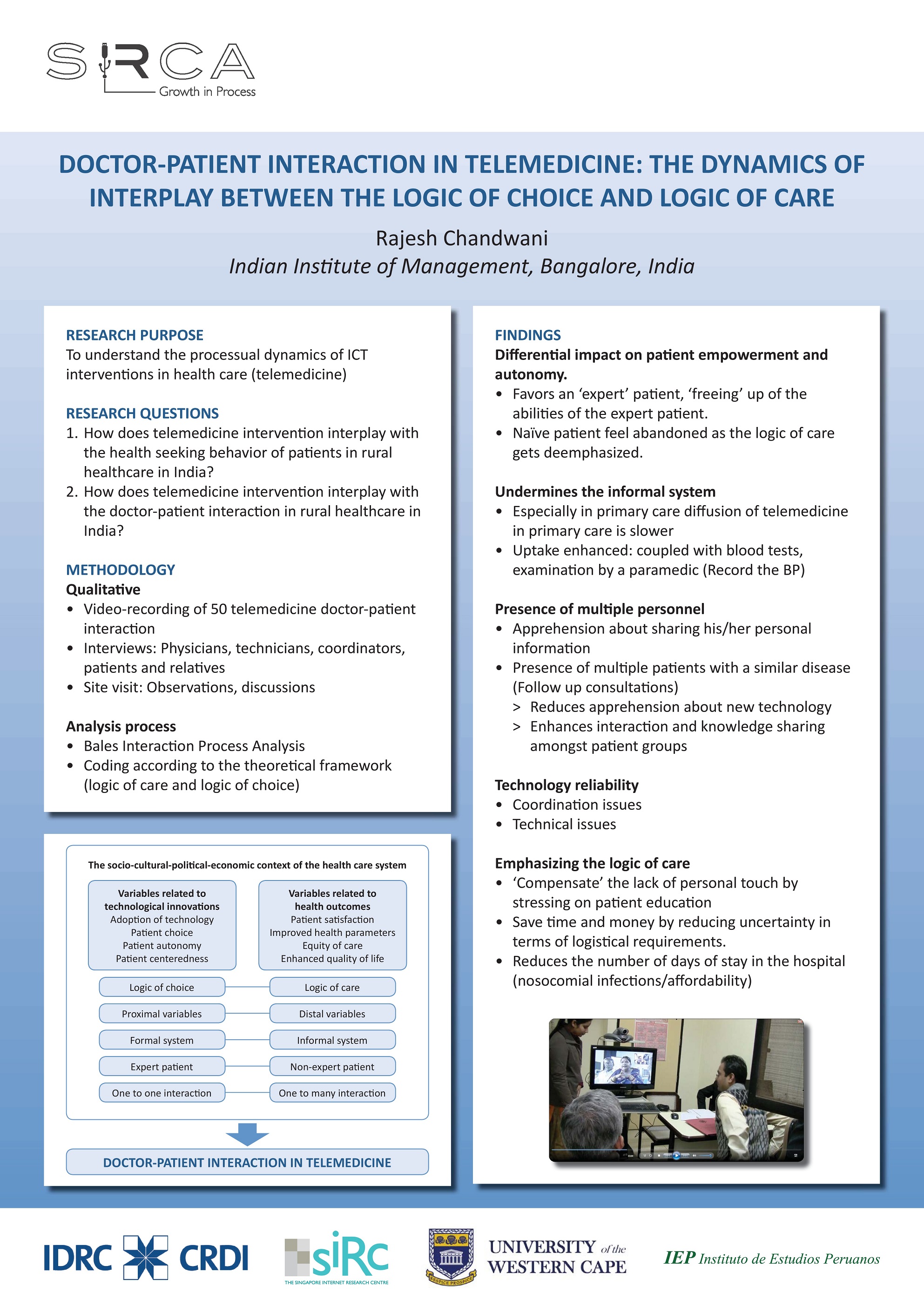 Dr. Rajesh Kumar Chandwani is a fourth year doctoral candidate at the Indian Institute of Management, Bangalore (India) in the OBHR area (Organizational Behavior and Human Resource Management). He is particularly interested in research on mitigating the gap between the ‘haves’ and ‘have-nots’ in health care in India. At present his research areas include scaling up of affordable health care services for the masses and the role of ICT in improving the access, quality and affordability of health care.