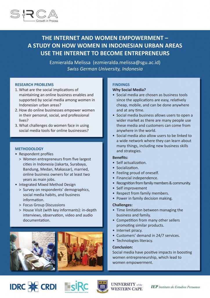 The Internet can open up windows of opportunity for many people, including for promotional activities. By studying women online entrepreneurs living in Indonesian urban areas, this project will investigate the social and cultural implications of the Internet in empowering women by enabling them to open up businesses from home.